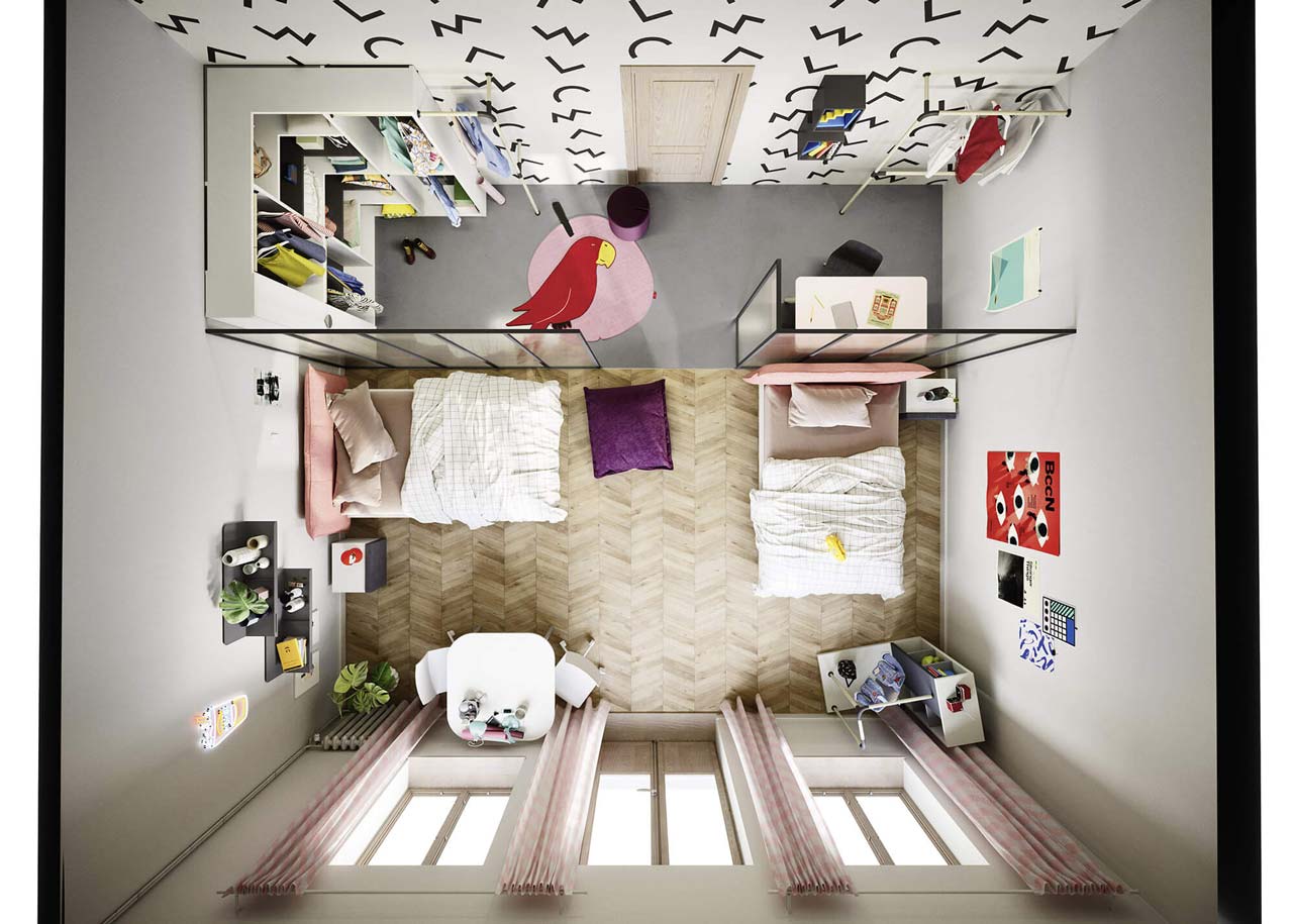 Complementi d’arrendo studiati per organizzare e rendere funzionale la camera da letto dei più piccini.